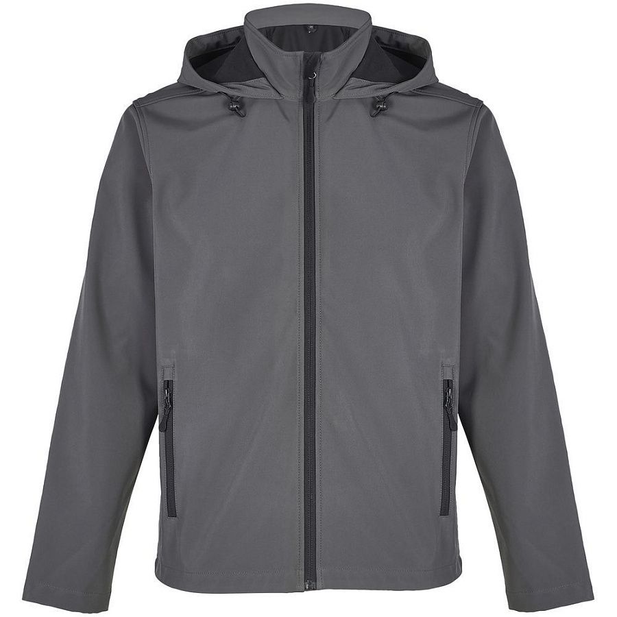 Мужская куртка софтшелл на молнии и с капюшоном.