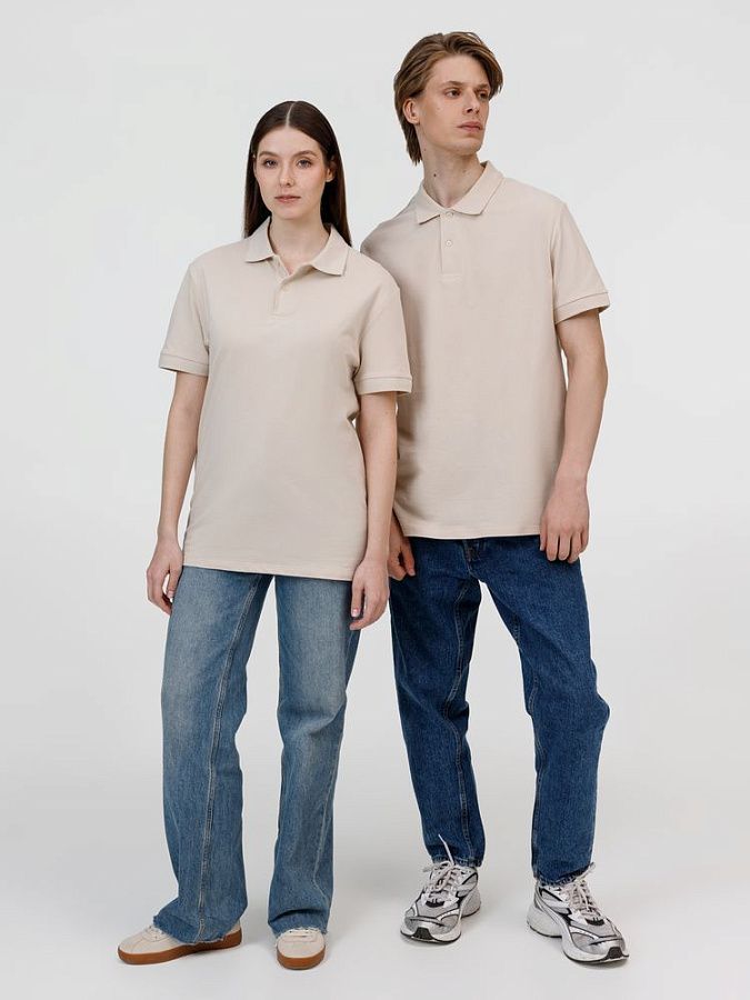 Рубашка поло унисекс Pulse, бежевая (льняная) под нанесение