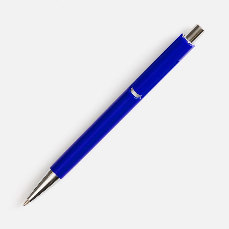 Шариковая ручка с цветным глянцевым корпусом и акцентными серебристыми деталями.