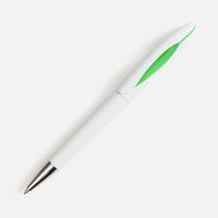 Шариковая ручка приятных округлых форм с белым глянцевым корпусом и цветовым акцентом.