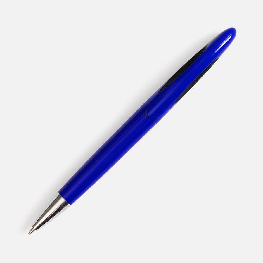 Шариковая ручка приятных округлых форм с цветным глянцевым корпусом и черным акцентом.