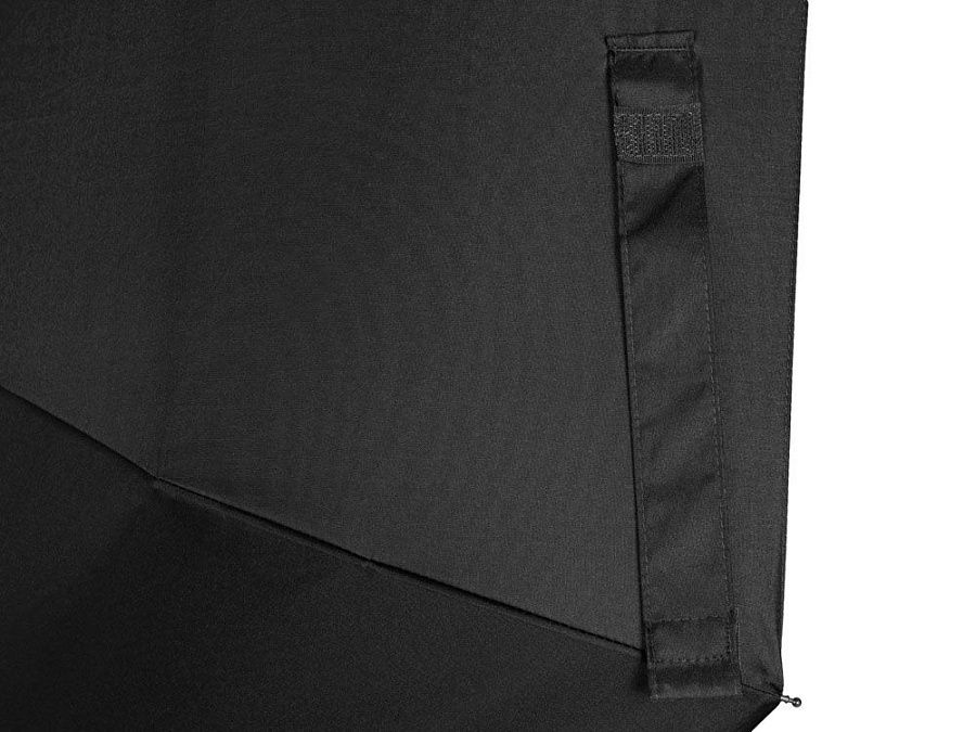 Купол зонта выполнен из переработанного пластика. Гибкие спицы из стекловолокна делают зонт стойким к порывам ветра. Удобная ручка софт тач. Фиксирующая купол застежка на липучке шириной 3 см - дополнительная опция для нанесения вашего логотипа.