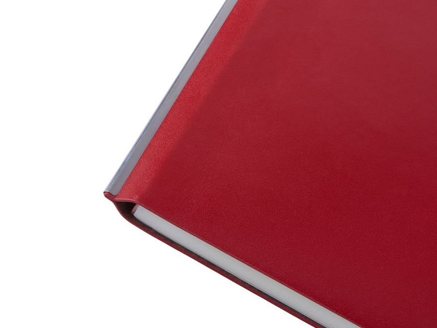 Гибкая обложка выполнена из искусственной кожи, корешок дополнен металлической вставкой.
