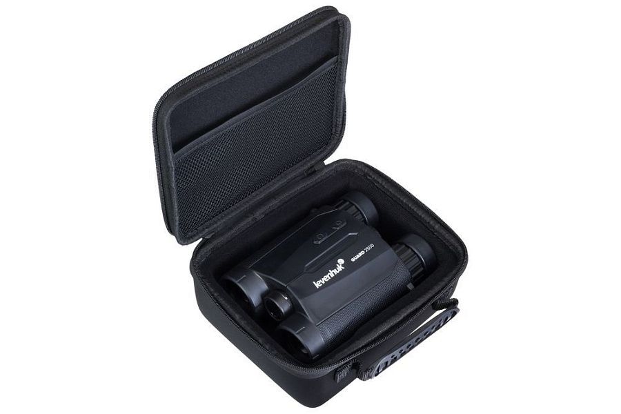 Бинокль с дальномером позволяет вести визуальные наблюдения на 8-кратном увеличении, а также измерять три параметра на местности: видимое и горизонтальное расстояния, а также угол места цели. Дальность измерений встроенного дальномера составляет 2500 метров.