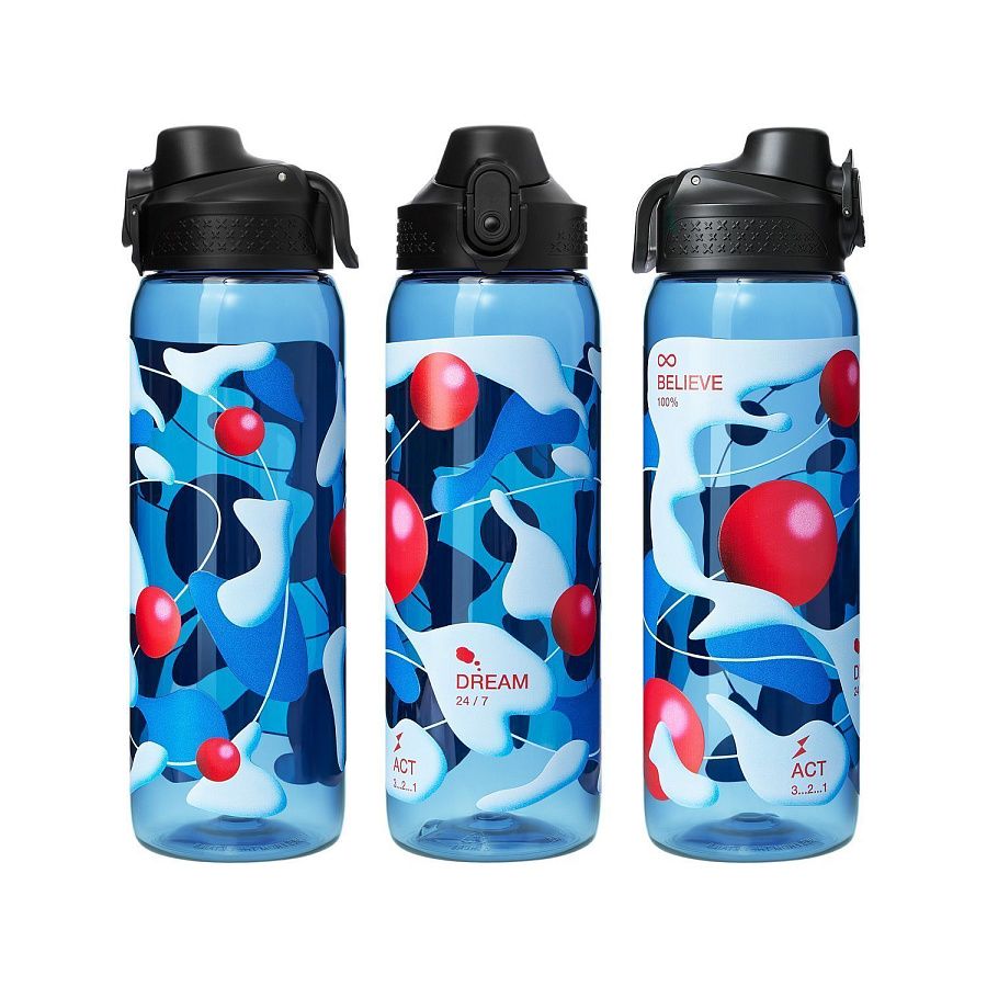 Благодаря универсальному размеру бутылку удобно брать с собой, положив в небольшую сумку или рюкзак. Рифленая вставка на крышке обеспечивает надежный захват и препятствует скольжению, а пластиковая ручка сделает доступным комфортную переноску.