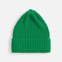 Однослойная шапка фактурной вязки с двойным отворотом.