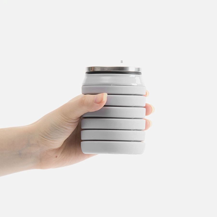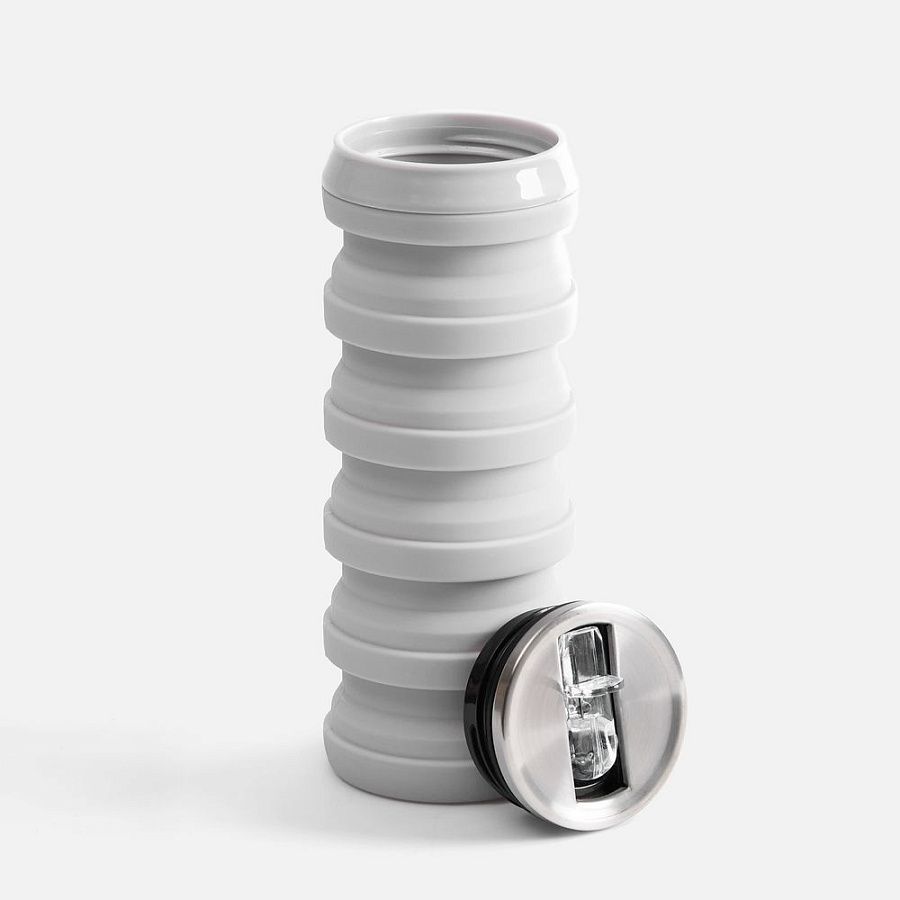 Складная бутылка для воды Folla привлекает внимание своим необычным внешним видом и функциональностью. По форме она больше всего напоминает классическую алюминиевую банку для напитков. При этом ее высоту можно легко увеличить с 10 до 20 см. В сложенном виде бутылка поместится даже в небольшую сумочку, а полный полезный объем составляет целых 480 мл.