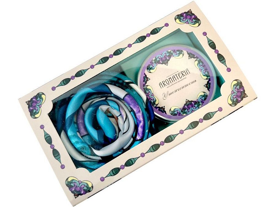 15 х 8,5 х 8,5 см, платок 90 х 90 см, свеча d6,5 х 5