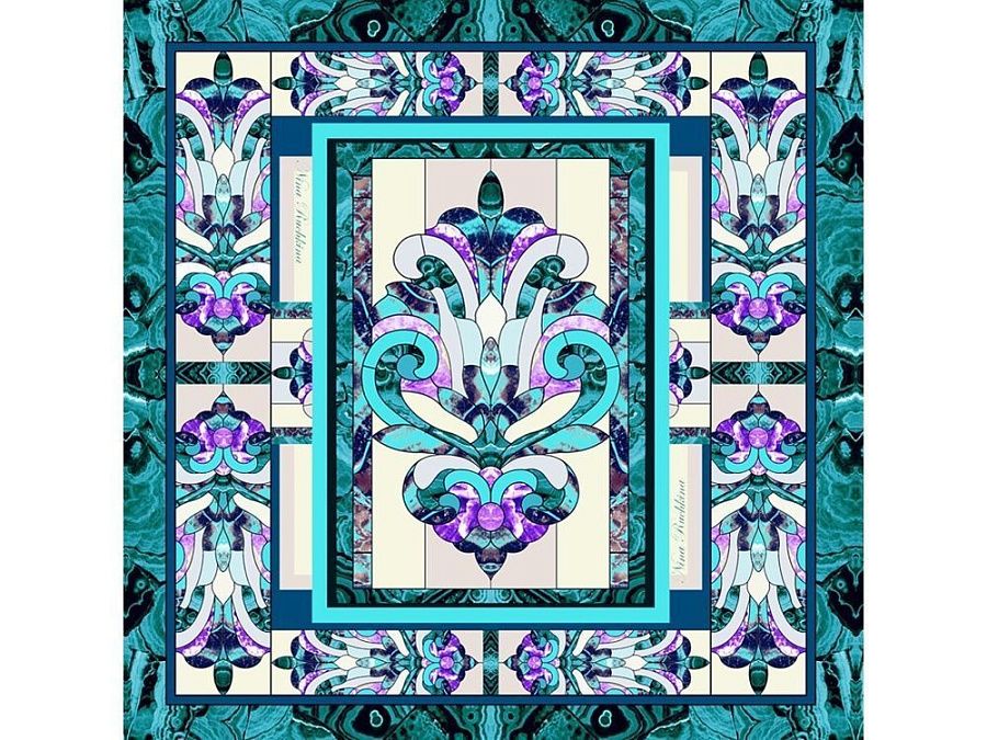 Платок «Кремль – Москва» в шелке воплощает шедевр ювелирного искусства Карла Фаберже из серии подарков для русской императорской семьи. В центре полотна расположен Успенский собор в обрамлении башен Московского Кремля. Утонченный рисунок, яркое цветовое решение и глубокий символизм дизайна платка созданы для эффектного акцента праздничного образа.