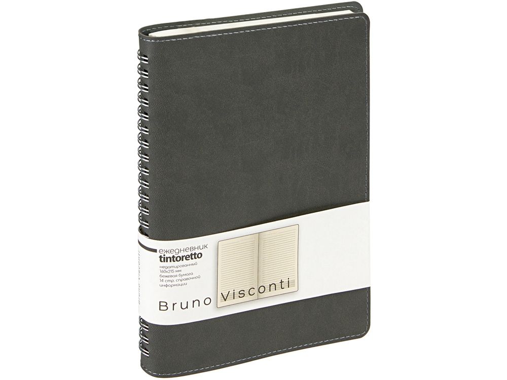 Недатированный ежедневник формата А5 "Tintoretto" ТМ Bruno Visconti - практичное решение для тех, кто любит ежедневники на «пружине». Полускрытый гребень позволяет держать ежедневник открытым на столе и комфортно вести записи. 272 страницы блока произведены из превосходной бежевой бумаги плотностью 70 г/кв.м, а неброская линовка каждой страницы позволяет не отвлекаться на лишние детали. Гибкую обложку из искусственной кожи украшает отстрочка декоративной нитью по краю.