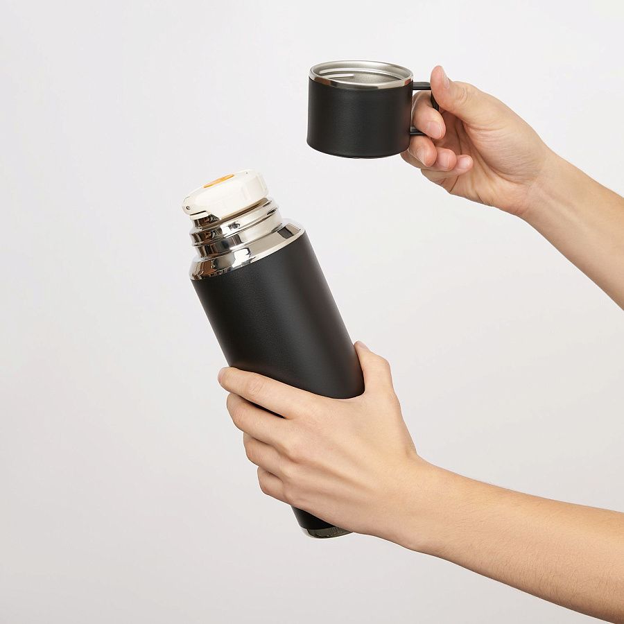 Все элементы изготовлены из безопасных материалов BPA free (не содержит Бисфенол А), а вакуумная конструкция надолго сохраняет температуру напитка.