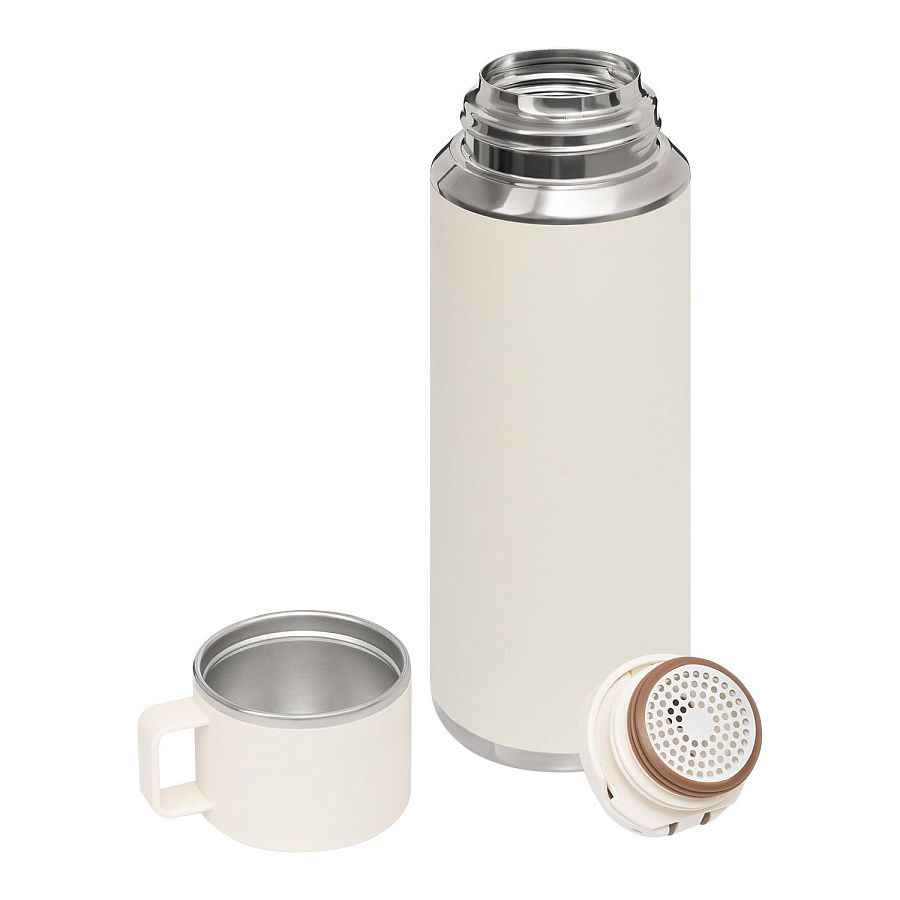 Удобное пользование: откидной клапан с силиконовым уплотнителем открывается нажатием кнопки, а увеличенное горлышко делает питье особенно удобным. Функциональная конструкция предусматривает наличие встроенного ситечко-фильтра, которое предотвращает попадание чаинок, а также крышки-чашки, заменяющую кружку в дороге, и антискользящей вставки на дне.
