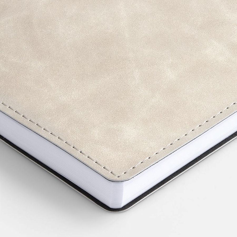 Ежедневник в клетку, с гибкой обложкой, выполнен из материала Nubuck Touch, светло-коричневый WW, дополнен ляссе бежевого цвета.