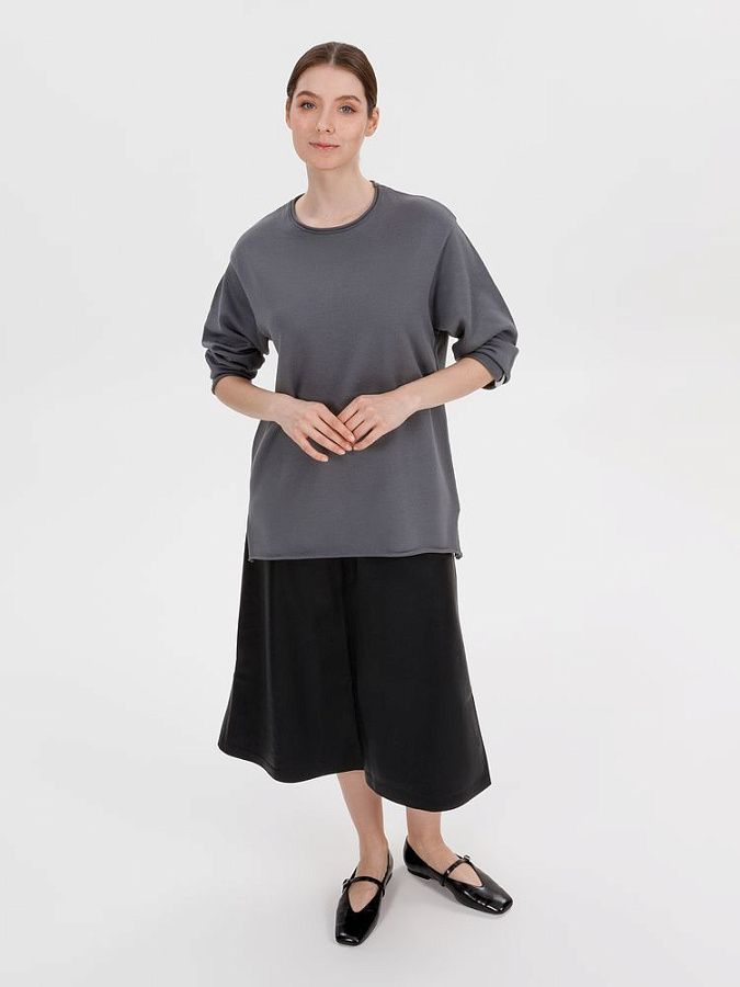 Лонгслив Fuori средней плотности с широким воротом, спущенной линией плеча и свободно подворачивающимися краями по низу, на рукавах и вороте, которые добавляют модели еще большей расслабленности. Прозрачная бирка с логотипом бренда на рукаве не нарушает минималистичности образа.