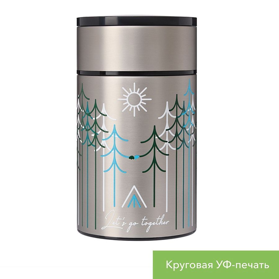 Внутренняя крышка оснащена специальным отсеком, в котором находится складная ложка из высококачественной стали 304 марки. Вакуумная конструкция из нержавеющей стали надежно сохраняет тепло.
