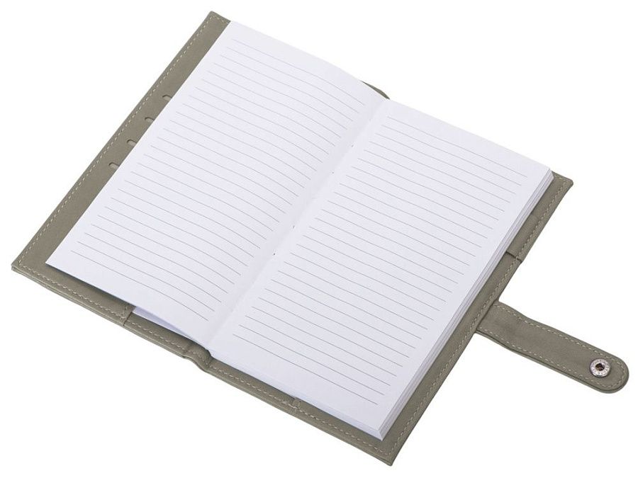 Внутри есть сменный блокнот на 64 листа. В него вы можете записывать планы на день или делать пометки о расходах сразу после оплаты.