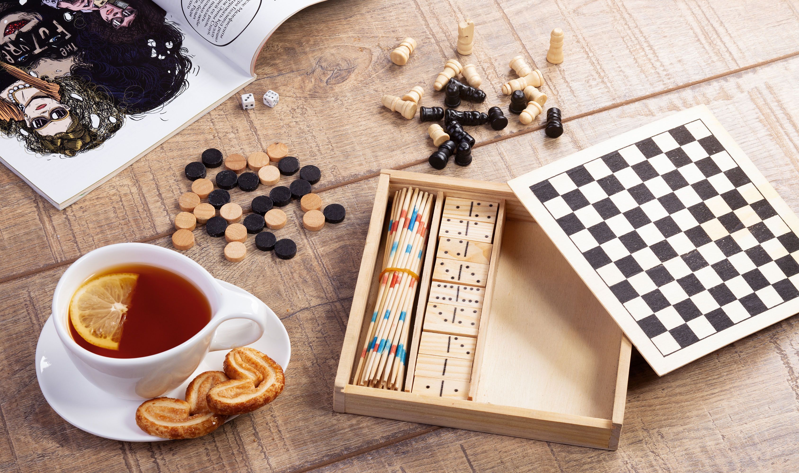 - Шахматы. Классическая игра для двух игроков, требующая стратегического мышления и тактического планирования.