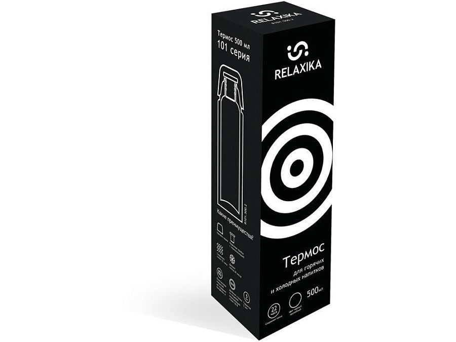 Классический термос Relaxika черного цвета с высокими показателями удержания температуры напитка для походов, путешествий, спорта и ежедневного использования. Прочные двойные стенки из высококачественной нержавеющей стали 18/8 с вакуумной изоляцией гарантируют, что ваш напиток останется холодным в течение 36 часов и горячим до 30 часов. Этот материал не только прочен, но и гигиеничен, не выделяет никаких вредных для здоровья веществ. Ваши напитки сохраняет естественный вкус и не приобретут посторонний запах.