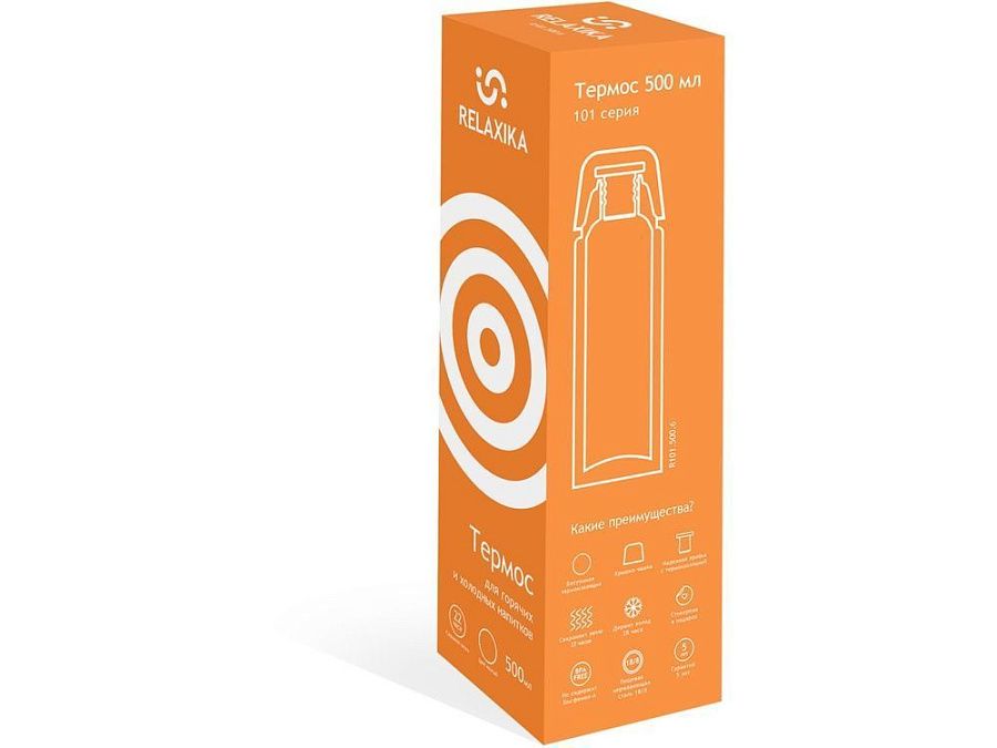Классический термос Relaxika черного цвета с высокими показателями удержания температуры напитка для походов, путешествий, спорта и ежедневного использования. Прочные двойные стенки из высококачественной нержавеющей стали 18/8 с вакуумной изоляцией гарантируют, что ваш напиток останется холодным в течение 36 часов и горячим до 30 часов. Этот материал не только прочен, но и гигиеничен, не выделяет никаких вредных для здоровья веществ. Ваши напитки сохраняет естественный вкус и не приобретут посторонний запах.