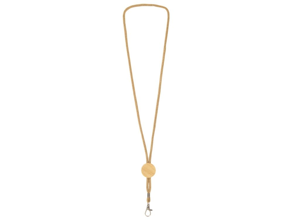 Шнурок изготовлен из переработанной бумаги и дополнен бамбуковой плашкой, на которую можно нанести логотип.