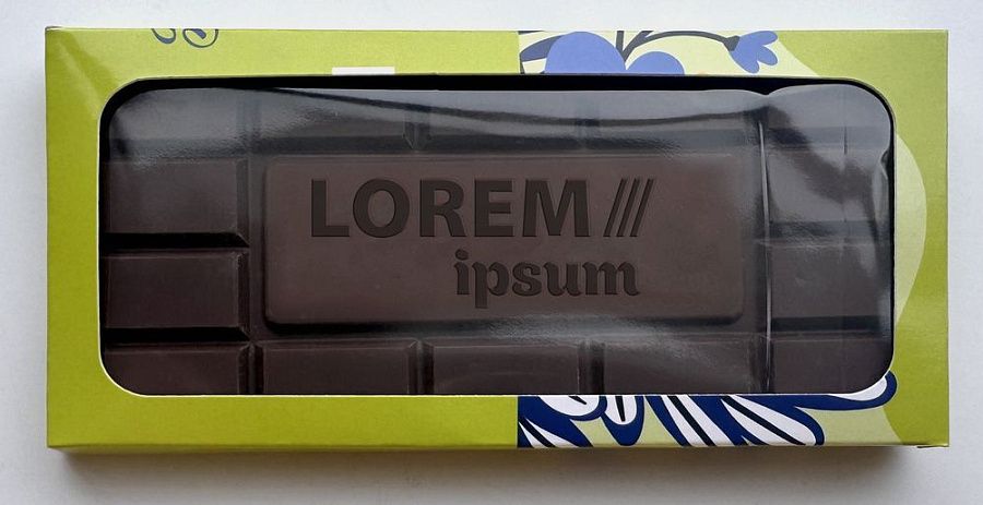 Окошко позволяет увидеть шоколад, не открывая коробку. Полноцветная печать упаковки выполняется по вашему дизайн-макету.