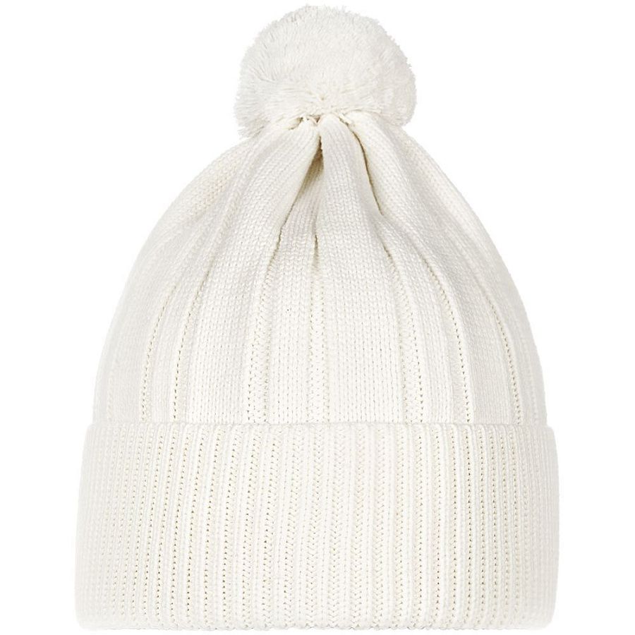 Однослойная шапка фактурной вязки с помпоном и широким отворотом.