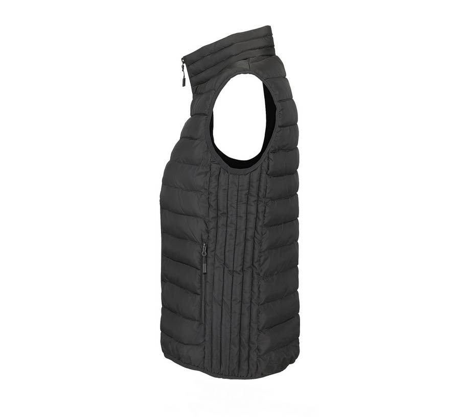 Материал верха и подкладки: таффета 280Т, 100% полиэстер. Наполнитель: биопух (100% полиэстер, плотность 210г м2.Центральная застежка и боковые карманы на нейлоновой молнии в тон изделия.Металлические слайдеры с дополнительными модными пуллерами в тон изделия.Воротник-стойка. Эластичная тесьма по проймам и низу в тон изделия. Дополнительно жилет комплектуется сумкой-мешочком для хранения из основной ткани (но не упаковывается в неё). Цвет, близкий к Pantone 425 C