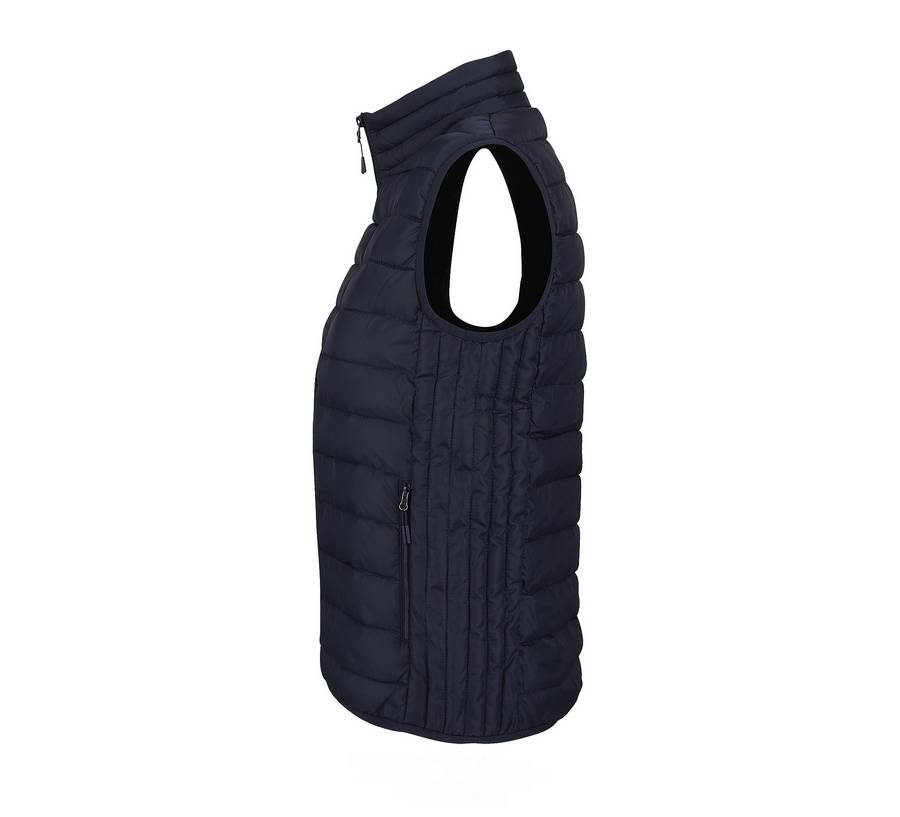 Материал верха и подкладки: таффета 280Т, 100% полиэстер. Наполнитель: биопух (100% полиэстер, плотность 210г м2.Центральная застежка и боковые карманы на нейлоновой молнии в тон изделия.Металлические слайдеры с дополнительными модными пуллерами в тон изделия.Воротник-стойка. Эластичная тесьма по проймам и низу в тон изделия. Дополнительно жилет комплектуется сумкой-мешочком для хранения из основной ткани (но не упаковывается в неё). Цвет, близкий к Pantone 296 C
