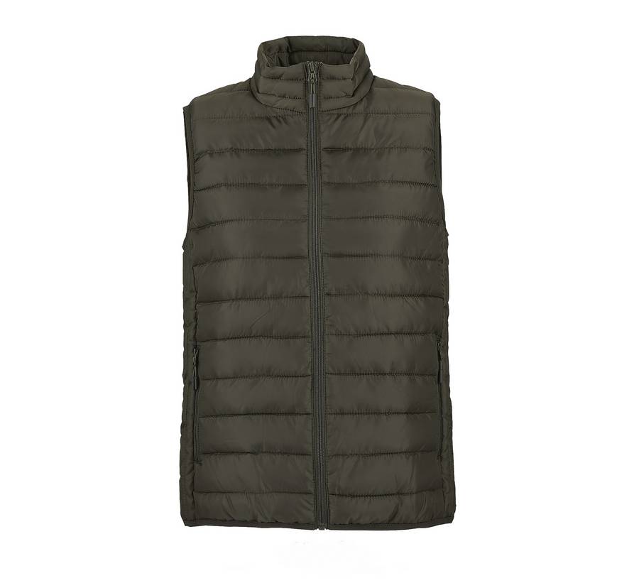 Материал верха и подкладки: таффета 280Т, 100% полиэстер. Наполнитель: биопух (100% полиэстер, плотность 210г м2.Центральная застежка и боковые карманы на нейлоновой молнии в тон изделия.Металлические слайдеры с дополнительными модными пуллерами в тон изделия.Воротник-стойка. Эластичная тесьма по проймам и низу в тон изделия. Дополнительно жилет комплектуется сумкой-мешочком для хранения из основной ткани (но не упаковывается в неё). Цвет, близкий к Pantone 7771 C