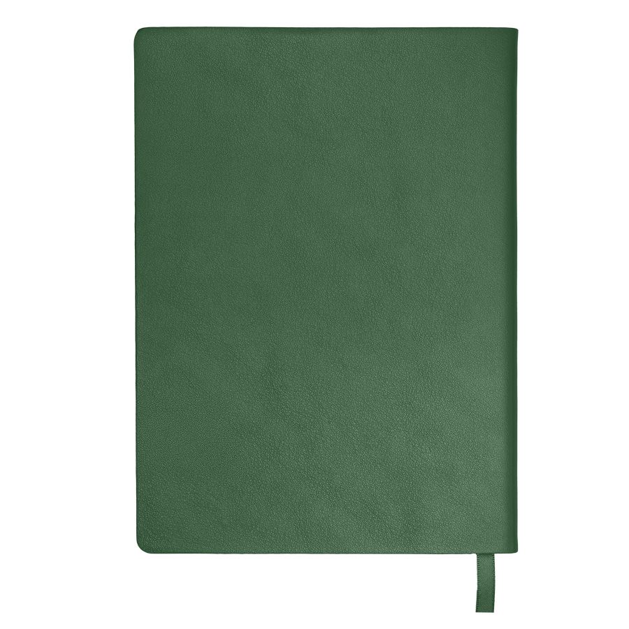 Бизнес-блокнот LADYЦвет обложки зеленый, близкий к Pantone 343CРазмер 150*210 мм, переплет мягкийОбложка - не термоактивный PU с эффектом кожи наппаБлок в клетку, скругленные углыСрез в цвет обложкиБумага кремовая, плотность 70 г м2Форзац нахцаз серый, близкий к Pantone 5 U Cool grey256 стр, перфорация на последних страницахЛяссе, 7 мм, в цвет обложкиУпаковка сливбокс + бумага