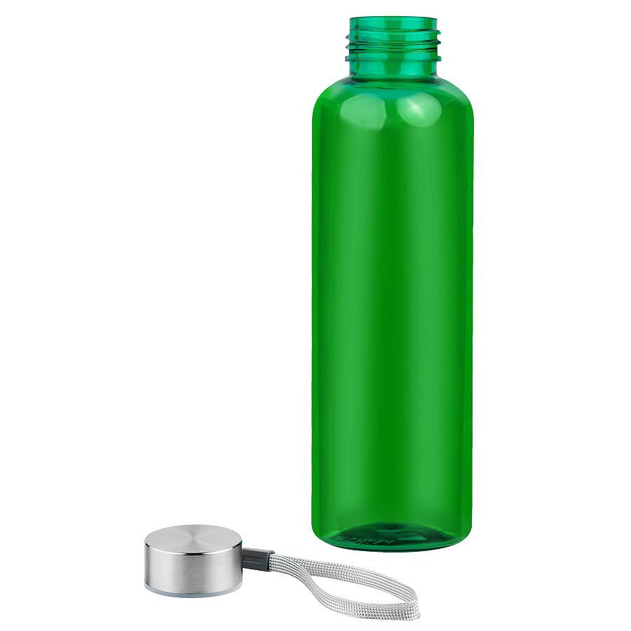 Пластиковая цветная бутылка с металлической крышкой.