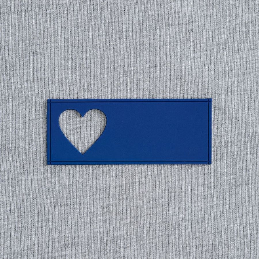 - сделать нанесение на изделии, поверх которого нашить лейбл так, чтобы вырубка стала частью целостного и уникального дизайна.