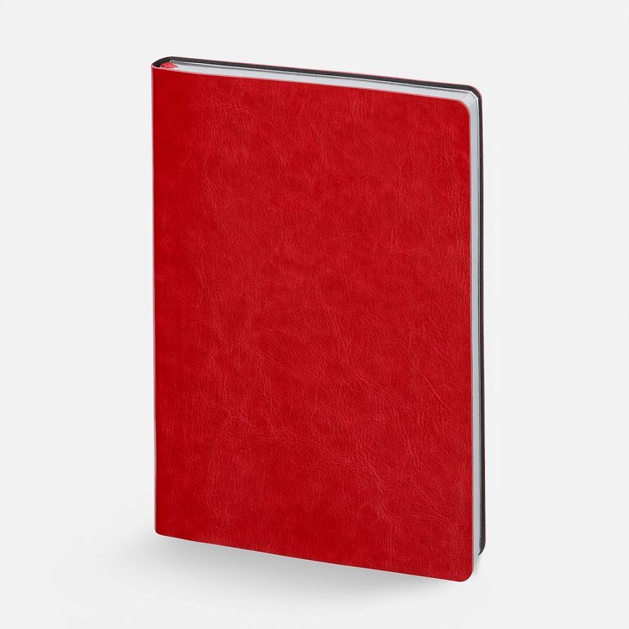 Ежедневник с гибкой обложкой, выполнен из материала Nebraska, красный PP, дополнен ляссе красного цвета.