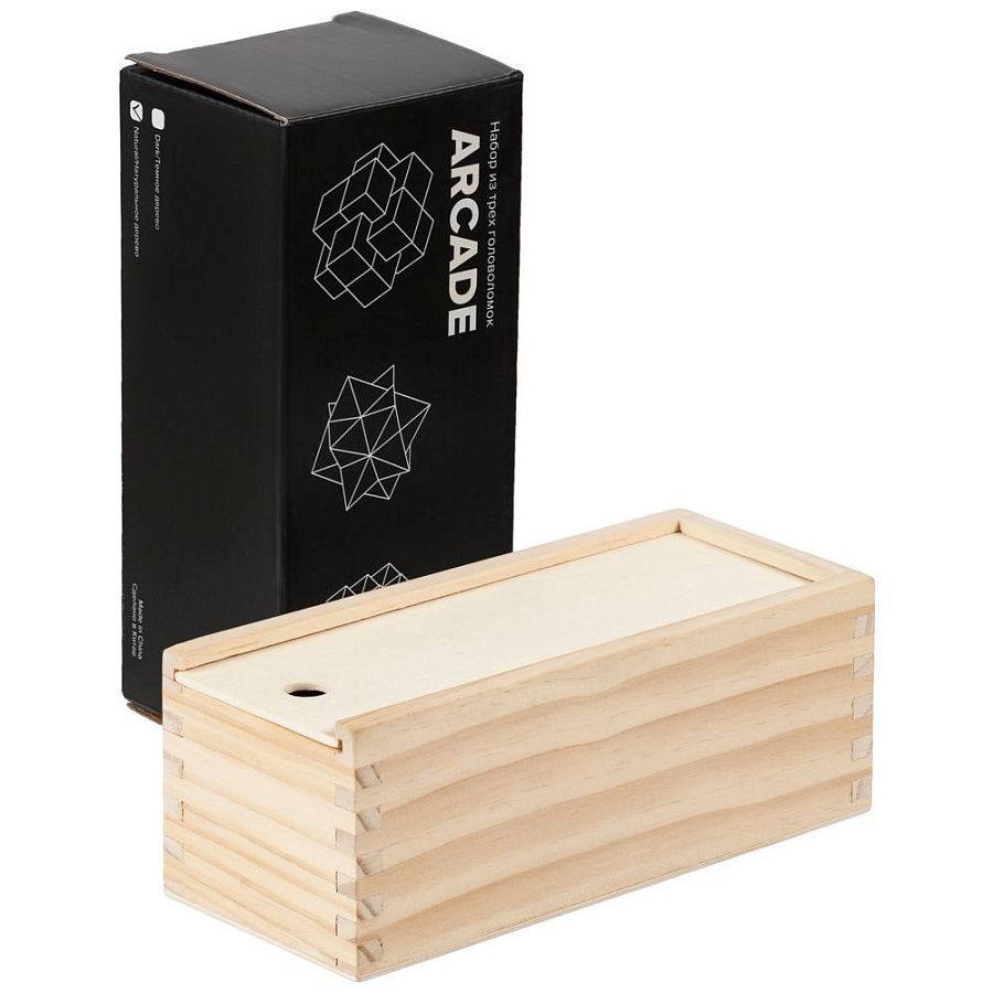 В наборе 3 деревянных головоломки, инструкция, мешочек.