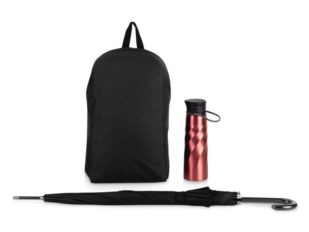 бутылка- d8,3 х 26,8 см, зонт- d103 х 86 см, рюкзак- 28 х 11,5 х 46