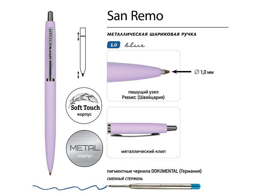 Как и все подарочные ручки «Bruno Visconti», «San Remo» - обладательница стержня с пишущим узлом от швейцарского производителя Premec и перманентными чернилами немецкого производителя Dokumental. Поэтому можно быть абсолютно уверенным в качестве письма.