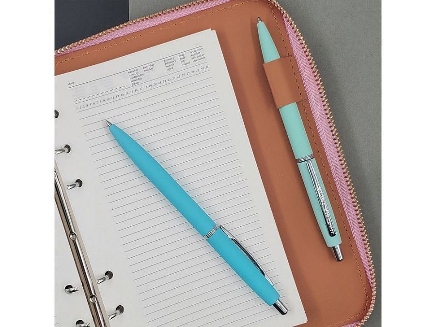 В ручке нет ничего лишнего, но она привлекает к себе внимание: изящна благодаря плавным линиям, эргономичному корпусу и приятна на ощупь, благодаря покрытию soft-touch. Контраст добавляют кольцо и клип из серебристого металла. Отличный бизнес-сувенир!