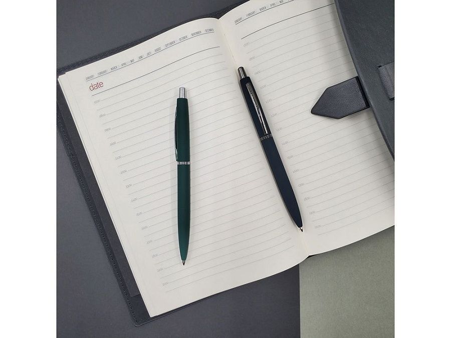 В ручке нет ничего лишнего, но она привлекает к себе внимание: изящна благодаря плавным линиям, эргономичному корпусу и приятна на ощупь, благодаря покрытию soft-touch. Контраст добавляют кольцо и клип из серебристого металла. Отличный бизнес-сувенир!