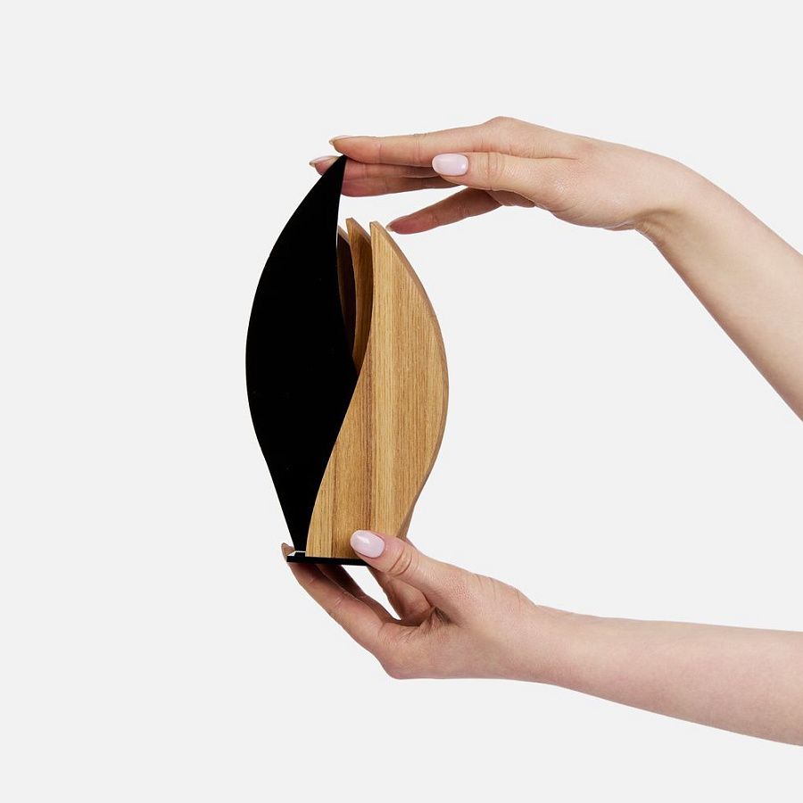 Благородный ясень, символизирующий непобедимость, прекрасно сочетается с глянцевой акриловой вставкой — получается эффектное и запоминающееся сочетание. Пусть эта награда зажжет искру вдохновения и поддержит огонь успеха коллег, партнеров и друзей.