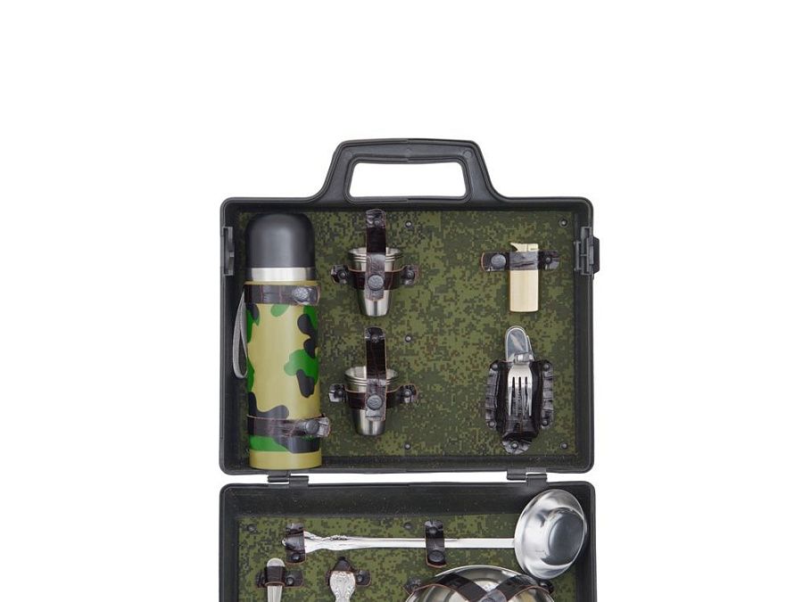 Подарочный набор для пикника. Этот комплект содержит все необходимое для комфортного и практичного времяпрепровождения на свежем воздухе. Вас ждут: - 6 мисок из нержавеющей стали (500 мл) — легкие и долговечные, идеально подходят для порционных блюд и закусок. - 6 вилок и 6 ложек из нержавеющей стали — надежные и стильные столовые приборы, которые сделают прием пищи удобным и приятным. - 6 стопок из нержавеющей стали — для дружеских тостов и веселых встреч на природе. - Половник — необходимый аксессуар для сервировки супов и горячих блюд. - Термос (500 мл) — для хранения ваших любимых напитков и поддержания жажды во время активного отдыха. - Складной туристический нож — многофункциональный инструмент для приготовления пищи и решения повседневных задач. - Зажигалка — для быстрого разжигания костра и создания уюта. Все элементы набора выполнены из качественной нержавеющей стали, что обеспечивает долговечность и легкость в уходе. Упакованы в пластиковый кейс и надежно закреплены ремешками из натуральной кожи, что обеспечивает удобство транспортировки и сохранность содержимого.