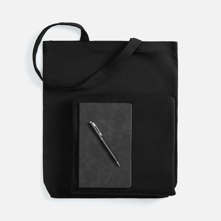 Набор с основной канцелярией и пледом — классика жанра в уютном исполнении. С компактным блокнотом под рукой будет удобно делать заметки в любое время, а легкий флисовый плед позволит выразить самые теплые пожелания.