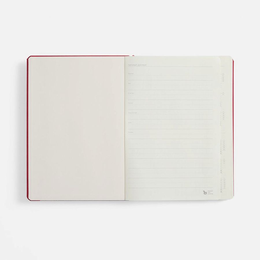 Ежедневник с твердой обложкой, выполнен из материала Nubuck Touch, красный PP, дополнен ляссе в цвет обложки.