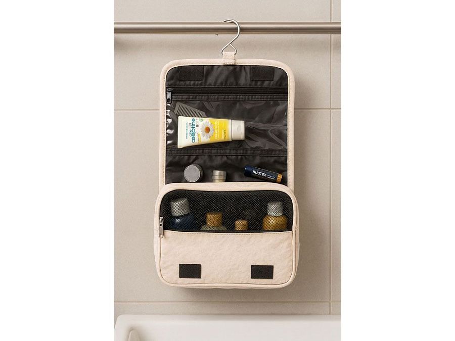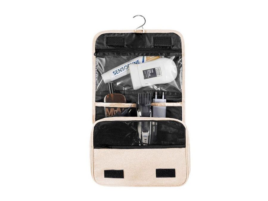 Несессер Planar оснащен металлическим крючком для подвешивания, который в сложенном виде убирается внутрь и не будет вам мешать. Для переноски несессер имеет ручку снаружи, а еще вы найдете плоский вместительный карман на его задней стороне. Клапан несессера закрывается на липучки и имеет три кармана — большой на молнии из прозрачного материала, который легко моется, даже в случае, если флакон изнутри разгерметизировался, и два из сетки, куда можно положить необходимые мелочи и которые удобнее использовать в висящем виде. Основное отделение несессера — объемное, с сетчатой вставкой для обзора, на молнии, имеет также наружный непрозрачный карман на молнии. Внутри этого отделения — два боковых объемных кармана под флаконы или баночки и два на стенке, а также есть укрепляющая накладка на дно, которую при необходимости можно отодвинуть для экономии места. Несессер является частью линейки Planar, благодаря чему его можно включать в состав сетов дорожных аксессуаров в едином стиле. - легко и быстро раскладывается - прозрачный карман из ПВХ для флаконов с жидкостями, который легко очистить - выполнен в стиле серии Planar, можно комбинировать с другими изделиями серии - множество разноплановых карманов под разное содержимое и цели - крючок для подвешивания - вместительный Инструкция по уходу: Не стирать в стиральной машине, не отбеливать, не гладить, предпочтительнее протирать мягкой тканью. Не является водонепроницаемым изделием.
