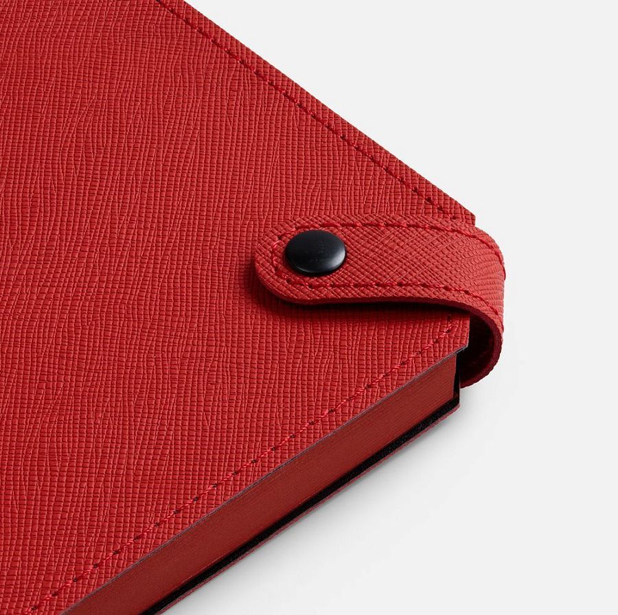 Ежедневник с гибкой обложкой, выполнен из материала Espresso, дополнен ляссе черного цвета и хлястиком на кнопке.
