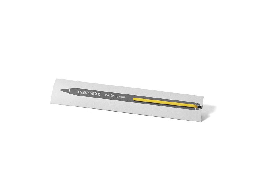Инновационный, совершенно необычный карандаш с цельным алюминиевым матовым корпусом черного цвета, ярко-желтым клипом и пишущим наконечником из материала GrafeeX. GrafeeX - это запатентованный инновационный материал, полученный в результате спекания мелких частиц графита при высоких температурах. То есть он пишет, как обычный графитовый карандаш, но из-за высокой плотности материала крайне экономно расходуется, и его хватает очень надолго. Карандаш вкладывается в элегантный темно-серый чехол с контрастной прострочкой в цвет клипа, сшитый вручную из рециклированной кожи. GrafeeX станет идеальным помощником в повседневной жизни: для заметок, для набросков или просто для записи идей на бумаге.