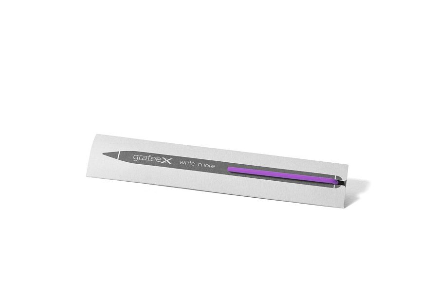 Инновационный, совершенно необычный карандаш с цельным алюминиевым матовым корпусом черного цвета, ярким фиолетовым клипом и пишущим наконечником из материала GrafeeX. GrafeeX - это запатентованный инновационный материал, полученный в результате спекания мелких частиц графита при высоких температурах. То есть он пишет, как обычный графитовый карандаш, но из-за высокой плотности материала крайне экономно расходуется, и его хватает очень надолго. Карандаш вкладывается в элегантный темно-серый чехол с контрастной прострочкой в цвет клипа, сшитый вручную из рециклированной кожи. GrafeeX станет идеальным помощником в повседневной жизни: для заметок, для набросков или просто для записи идей на бумаге.