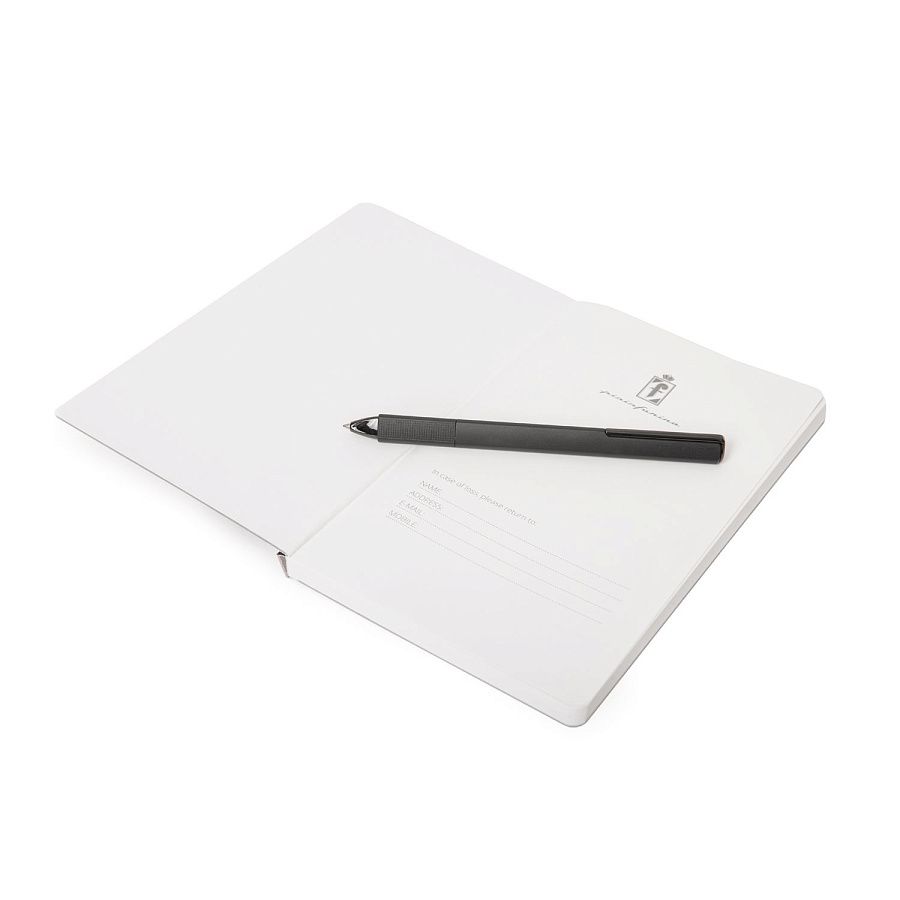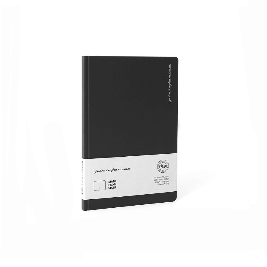 Тетрадь с листами из каменной бумаги. Дизайнеры Pininfarina создали элегантный минималистский дизайн для своего идеального дополнения к линейке вечных ручек Pininfarina Segno, так как именно на каменной бумаге они оставляют очень яркий след. Черная твердая обложка с покрытием soft-touch фиксируется резинкой того же цвета. Тетрадь размером А5 (14х21 см) содержит 64 листа без линовки. Листы сделаны из каменной бумаги, экологической альтернативы обычной целлюлозной бумаге, которая не требует вырубки деревьев, использования воды и агрессивных химических веществ, тем самым защищая окружающую среду. Она состоит из 80% камня (карбоната кальция) и на 20% из связующего его нетоксичного полиэтилена высокой плотности (HDPE). Это бумага нового поколения с уникальными характеристиками. Каменная бумага на 100% водоотталкивающая, ее можно мыть. Жидкости, включая масло, не изменяют ее структуру, поскольку она не содержит древесных волокон, которые поглощают жидкости, в следствие чего традиционная бумага покрывается пятнами, деформируется и разрушается. Каменная бумага устойчива к разрыву, что также способствует ее долговечности. Она имеет приятный бархатистый эффект и не отражает свет. Плотность бумаги 140 гр/м2. Сделана в Италии.