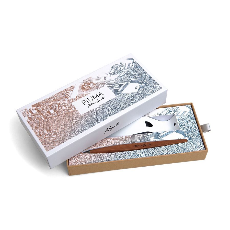 Вечная ручка Pininfarina Piuma Неаполь из лимитированной коллекции дизайнеров Pininfarina в сотрудничестве с Francesco Corni Foundation, посвященной красоте Италии и представленной 8 городами. Франческо Корни - выдающийся дизайнер из Модены, посвятивший свою жизнь популяризации истории и архитектуры. Используя трехмерное перспективное видение, он изучает наиболее значимые здания каждого города, выбирает наилучшую точку обзора, чтобы подчеркнуть их особенности, и прорисовывает детали в древней технике калиграфии. Дополняет видение мастера умелое использование цветов, по одному для каждого города. Для Неаполя дизайнер выбрал центральной точкой площадь Piazza del Plebiscito и светло-синий цвет, в результате подарочная коробка c ручкой Pininfarina PIUMA становится произведением искусства. PIUMA - ручка динамической формы в виде гусиного пера. Дизайнеры вдохновлялись Кодексом о полете птиц мастера Леонардо да Винчи, целью которого было понять тайну полета и который хранится сейчас в Королевской библиотеке Турина. Piuma находится в постоянном равновесии со своим центром тяжести благодаря белому стальному пьедесталу. Вечная ручка имеет необычный пишущий узел в виде наконечника Ethergraf®, изготовленного из сплава металлов по запатентованной технологии. Он не содержит свинец и алюминий, производится вручную итальянскими мастерами и практически не расходуется за десятилетия использования. При соприкосновении с поверхностью бумаги, происходит химическая реакция и наконечник оставляет серебристый след, который напоминает цвет графитового карандаша, но обладает большей стойкостью. Идеально пишет на каменной бумаге. На ручке стильный логотип Italian Beauty, она полностью сделана из дерева груши. Набор упакован в белую подарочную коробку.