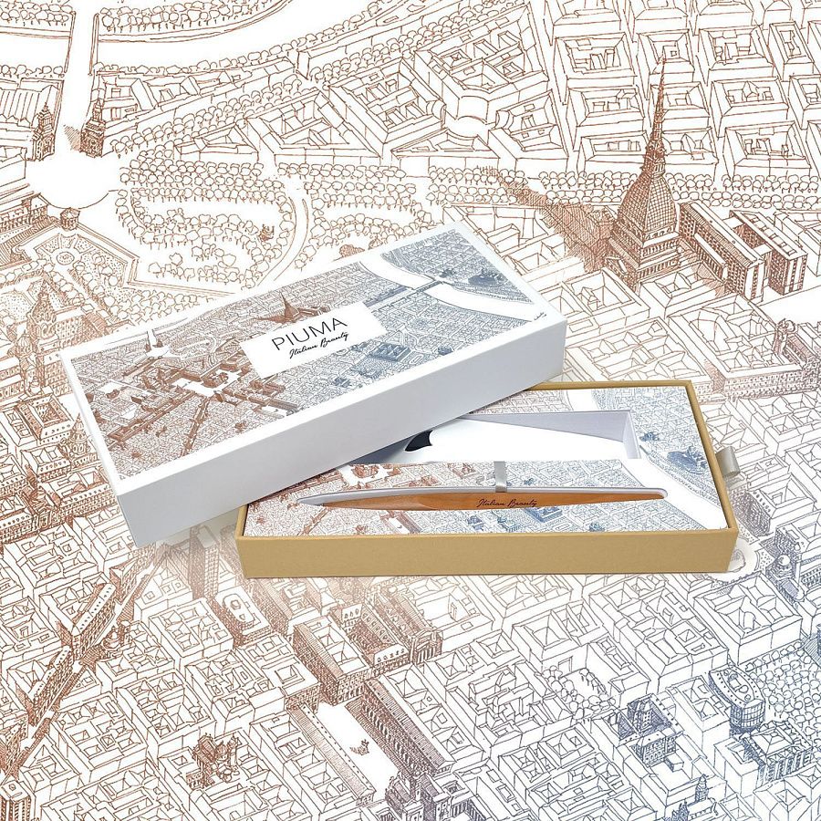 Вечная ручка Pininfarina Piuma Турин из лимитированной коллекции дизайнеров Pininfarina в сотрудничестве с Francesco Corni Foundation, посвященной красоте Италии и представленной 8 городами. Франческо Корни - выдающийся дизайнер из Модены, посвятивший свою жизнь популяризации истории и архитектуры. Используя трехмерное перспективное видение, он изучает наиболее значимые здания каждого города, выбирает наилучшую точку обзора, чтобы подчеркнуть их особенности, и прорисовывает детали в древней технике калиграфии. Дополняет видение мастера умелое использование цветов, по одному для каждого города. Для Турина дизайнер выбрал центральной точкой площадь Piazza Castello и сапфировый цвет, в результате подарочная коробка c ручкой Pininfarina PIUMA становится произведением искусства. PIUMA - ручка динамической формы в виде гусиного пера. Дизайнеры вдохновлялись Кодексом о полете птиц мастера Леонардо да Винчи, целью которого было понять тайну полета и который хранится сейчас в Королевской библиотеке Турина. Piuma находится в постоянном равновесии со своим центром тяжести благодаря белому стальному пьедесталу. Вечная ручка имеет необычный пишущий узел в виде наконечника Ethergraf®, изготовленного из сплава металлов по запатентованной технологии. Он не содержит свинец и алюминий, производится вручную итальянскими мастерами и практически не расходуется за десятилетия использования. При соприкосновении с поверхностью бумаги, происходит химическая реакция и наконечник оставляет серебристый след, который напоминает цвет графитового карандаша, но обладает большей стойкостью. Идеально пишет на каменной бумаге. На ручке стильный логотип Italian Beauty, она полностью сделана из дерева груши. Набор упакован в белую подарочную коробку.