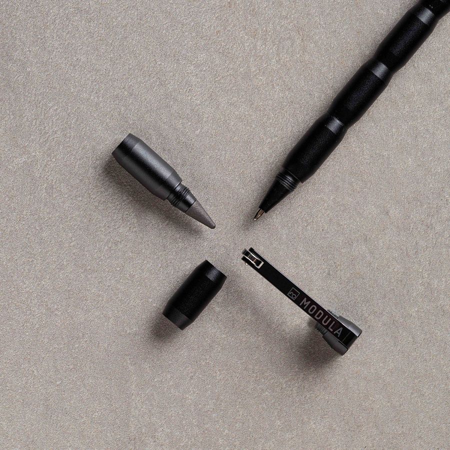 Ручка-трансформер из коллекции Pininfarina Modula синего цвета создана Pininfarina в сотрудничестве с итальянским дизайнером Луиджи Тренти. Получился совершенно необычный пишущий инструмент, сочетающий в себе шариковую ручку и карандаш. Корпус сделан из алюминия и имеет два независимых пишущих узла: шариковую ручку и карандаш со сменным наконечником из материала GrafeeX. GrafeeX - это запатентованный инновационный материал, полученный в результате спекания мелких частиц графита при высоких температурах. То есть он пишет, как обычный графитовый карандаш, но из-за высокой плотности материала крайне экономно расходуется, и его хватает очень надолго. Modula - это своеобразный конструктор, так как она может быть составлена по-разному, вплоть до укорачивания, вследствие того, что один из двух наконечников можно убрать. Оригинальный дизайн клипа. Длина ручки 15 см, диаметр 0,6 см, вес 22 гр. Упакована в черную коробку из дизайнерского многослойного картона 15х3,5х2 см. Вес в упаковке 62 гр. Сделана в Италии.
